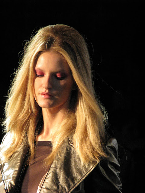 Muito couro colorido, jaquetas, peles, saias, meia rastão, uma make amazing e um cabelo super "usável".